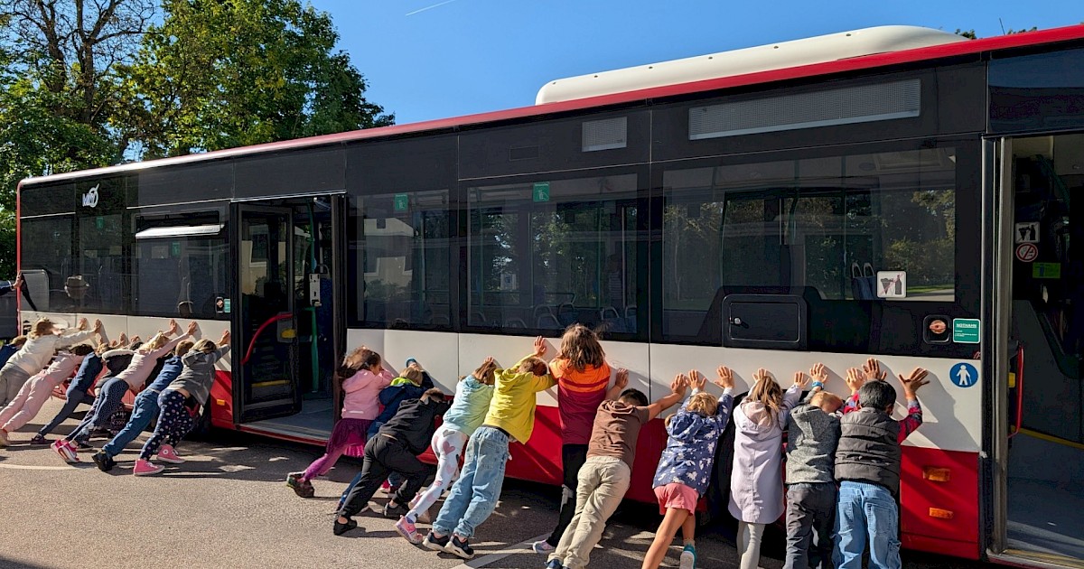 Beim Busfahrtraining erfuhren unsere Erstklässler, wie wichtig Sicherheit auf dem Schulweg ist. Mit praktischen Übungen und kleinen Rollenspielen wurde das richtige Verhalten im Bus geübt – ein spannender und lehrreicher Vormittag!