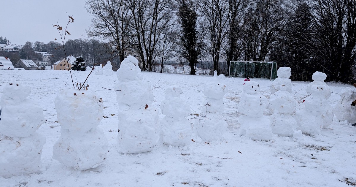 Der viele Neuschnee sorgte bei der Klasse 1c für große Begeisterung und einen ganz besonderen Unterricht. Mit viel Freude und Energie bauten die Kinder zwölf eisige Schneemänner, von denen einige sogar größer waren als ihre Erbauer.